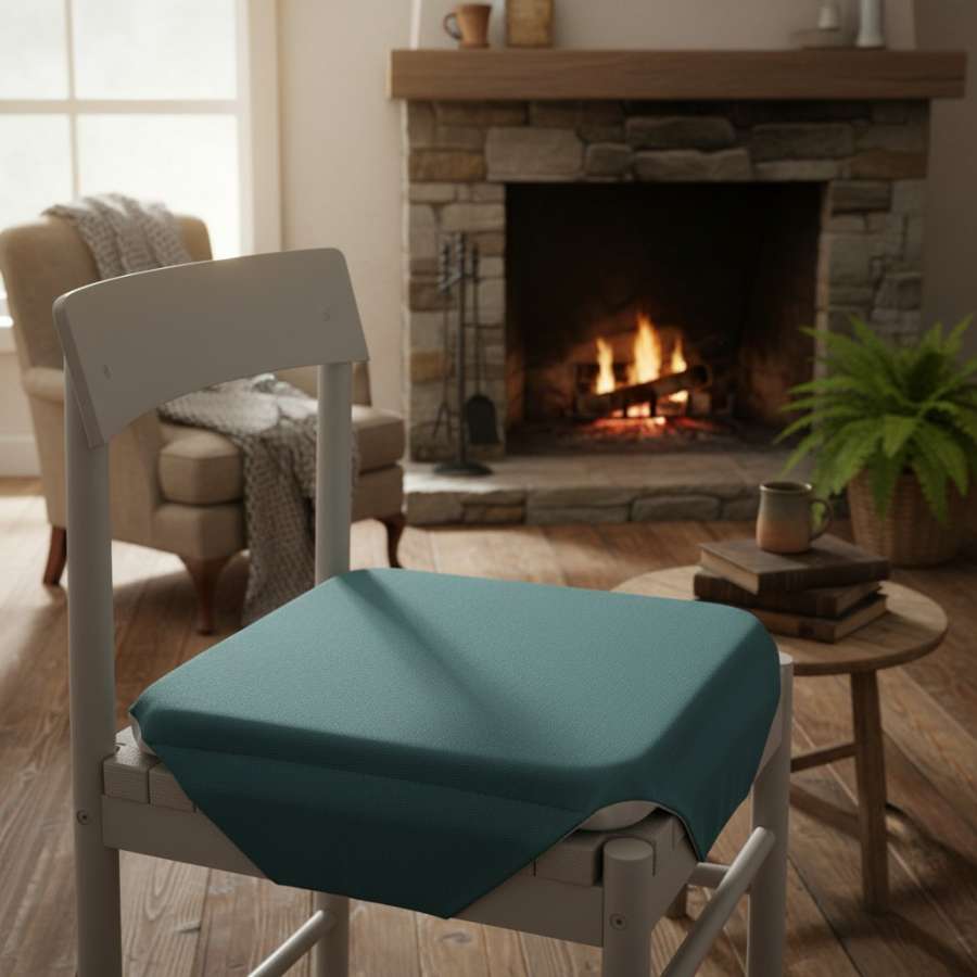 Cuscino coprisedia sfoderabile con cerniera lampo, dotato di 4 alette che permettono di bloccare il cuscino alla seduta.