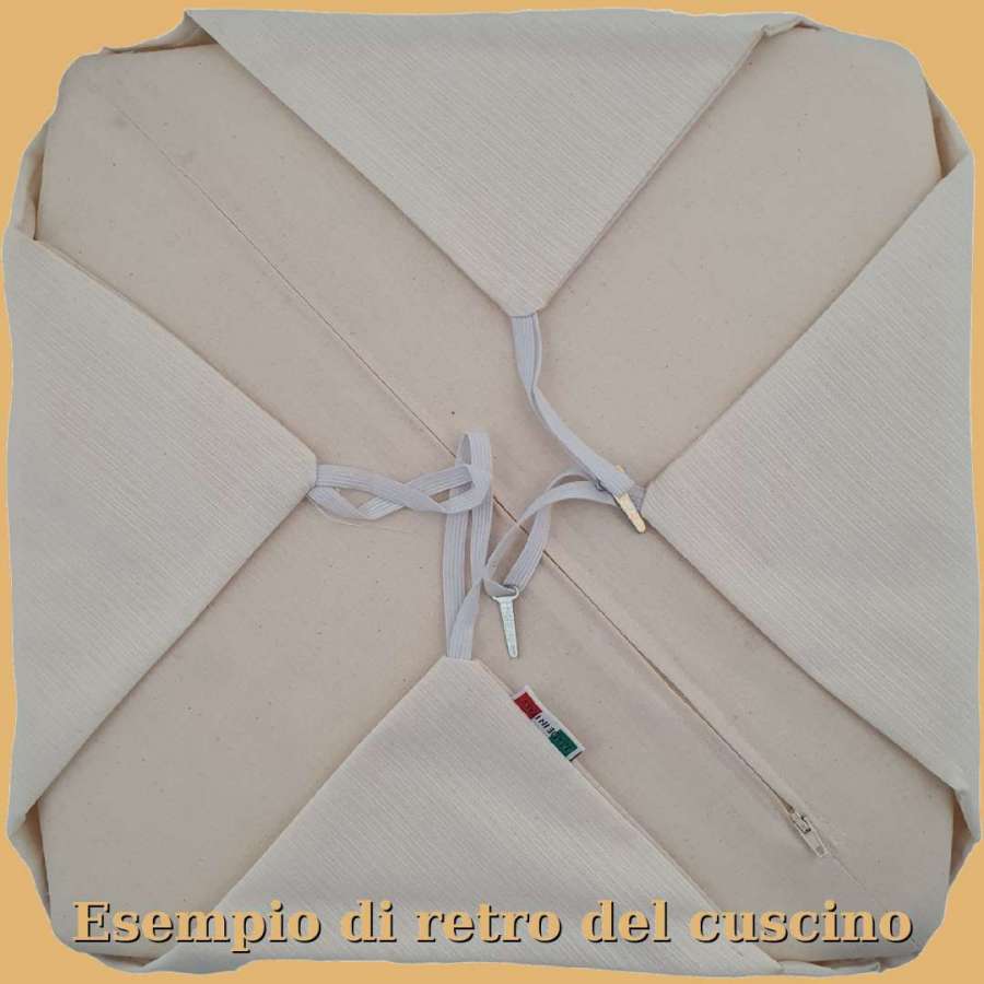 Cuscino coprisedia sfoderabile con cerniera lampo, dotato di 4 alette che permettono di bloccare il cuscino alla seduta.